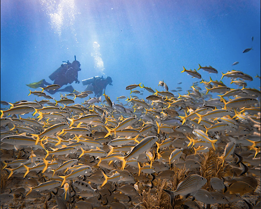 Es aquí donde los grupos se dividen estratégicamente—cinco personas por instructor—para garantizar que cada buzo obtenga una experiencia íntima, segura y profunda, protegiendo tanto a la persona como al delicado arrecife.